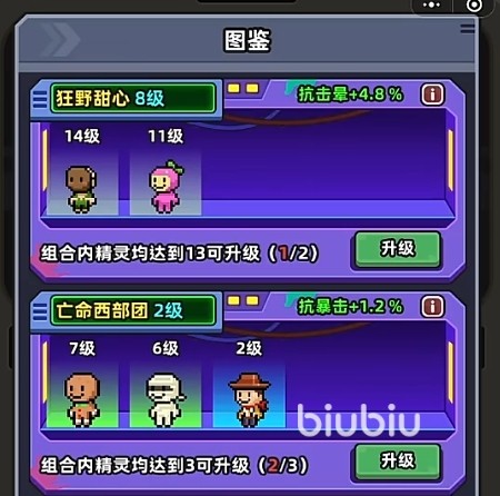 其次是精灵的选择,精灵的原理同机宠一样,玩家们能在对战过程中携带2-3哥精灵,不同的精灵有不同的加成效果,不过在精灵图鉴上有相应的搭配,更方便玩家们选择合适的精灵组合。