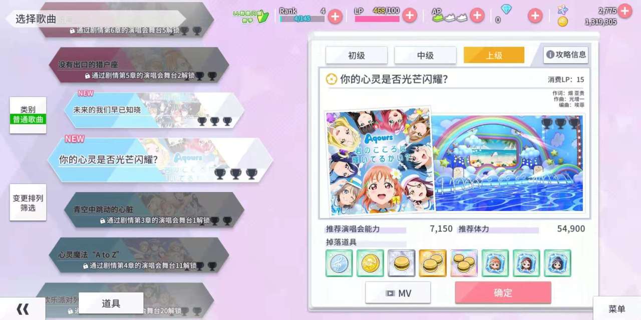 每个剧情的演唱会消耗9点体力值,剩余的体力值可以在右上方的LP中查看,体力值是可以叠加的。玩家的在线时长也是消耗体力的,所以当体力低于100的时候,玩家可以采取适当挂机,让LP自然恢复。