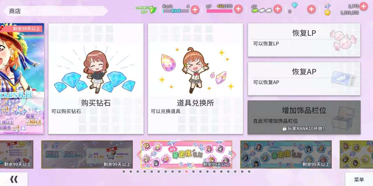 每日登录都可以领取一定数值的爱星,点击右下角商店,在商店的右侧可以恢复体力,注意当玩家的体力在200以上的时候,是无法进行恢复的,每次恢复消耗一定的爱星就可以得到体力了。