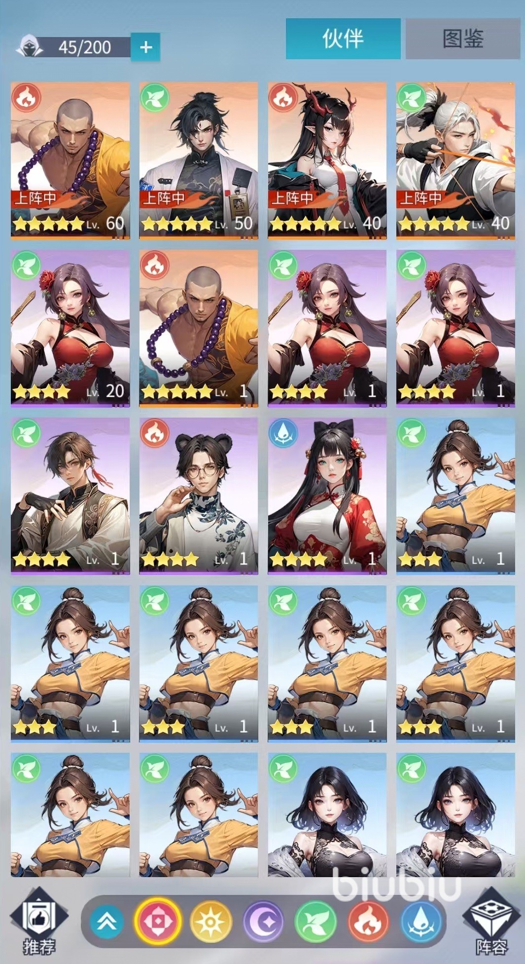 在战斗方面采用的是自动回合制模式,推出了五行相克的设定和五大阵营。每个出场的角色都拥有多项属性,其中速度是最重要的,决定了出手顺序,积累怒气后可释放大招。上阵的角色支持羁绊加成和连携技能等方面的策略设定。所以大家在制定策略的时候,需要考虑到职业搭配、功法组合还有相应的克制关系,尤其是一些高难度副本中,一定要依靠羁绊和克制来提高胜率,而不是一味的去堆资源。在养成方面,符合卡牌游戏的一贯特点,包括升级、升星、觉醒等这些常规方面都能够大幅度提升战力。为了让游戏的玩法更加休闲,还加入了自动挂机的设定,通过快速作战和离线收益就能轻松累计修为和资源。