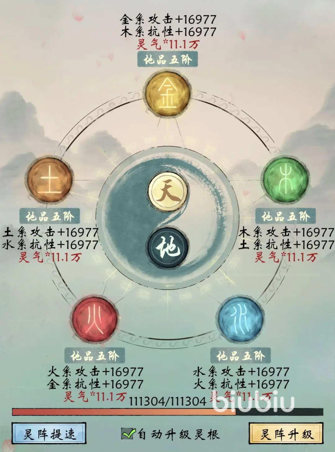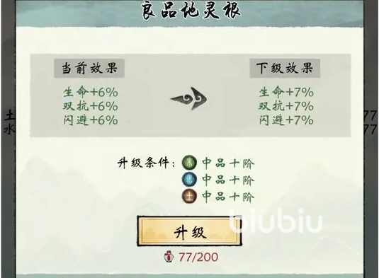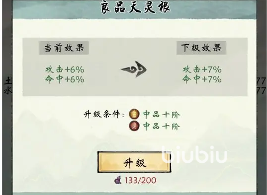 4、还有两种东西叫做天灵根和地灵根,这个是能够给玩家带来百分比属性加成的,每次升级可以带来1%的效果提升,升级所需要的条件是“五行灵根”等级,以及使用对应数量的天灵乳和地灵乳。