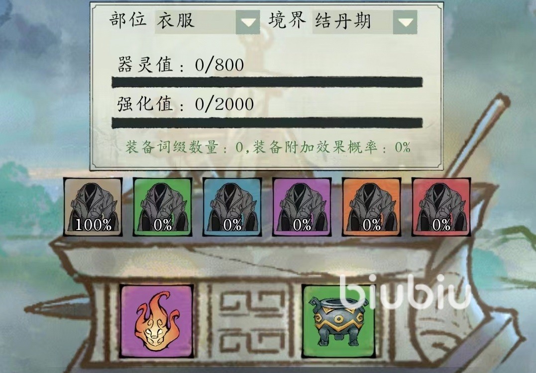 在上方位置中可以选择不同境界与部位,包括武器,帽子,衣服等,哪样缺少就直接练哪个,境界就是自己当前所需要的,或者是为下一境界提前做准备。装备锻造只有上面这些需求,没有其他配方和图纸要求,所以使用起来比较简单也很自由。