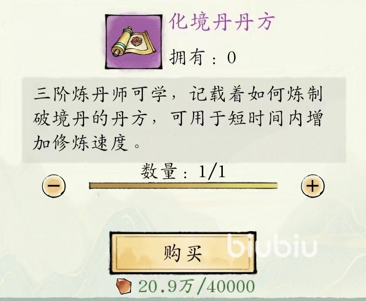 获取了心得之后,接下来就是要考虑如何快速将经验冲上去,和炼器术不同,炼丹能够炼制内容有很多、因为玩家在修炼时候就可以服食各种丹药,有些可以增加属性,例如生命值,攻击力,物抗等。有些是在渡劫时候提高突破几率,这些都是修仙过程中所必备道具,直接在商店中购买配方之后炼制就可以。但是在练属性丹时候一定要注意数量,因为每个人所能吃下同种丹药有上限,如果练多了就会导致资源浪费。