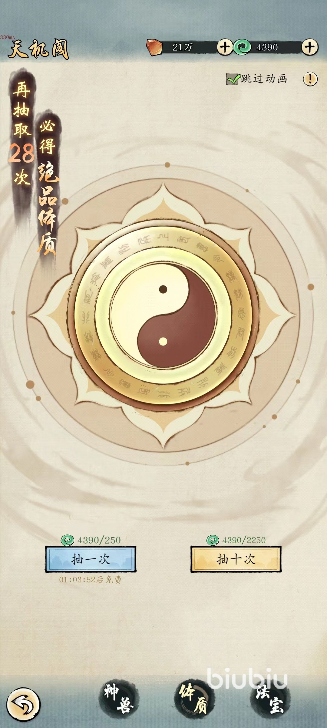 只有当玩家开启元神玩法之后,才能获得灵体以及添加使用,这一点要比体质更先进些,但是在获取方式上是一样的,都是在天机阁中抽取到。在天机阁奖励列表中就能看到,同样都分为紫色和橙色两个品级,在抽取时候获取几率也完全相等,只是体质是用于角色自身,而灵体是给元神添加。