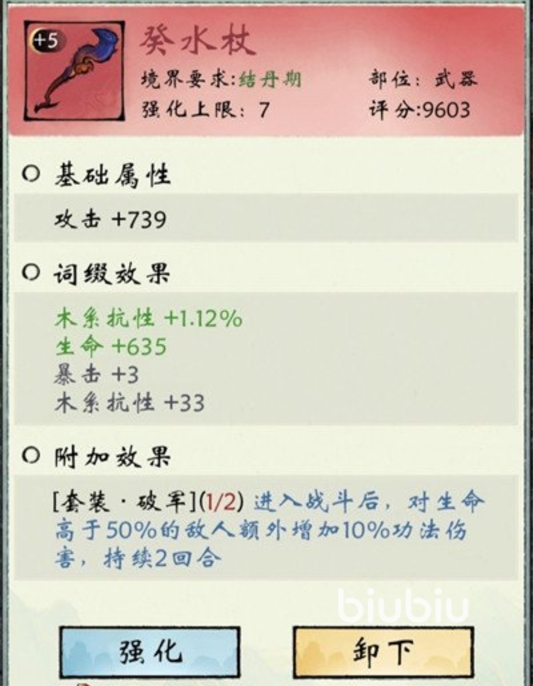 装备的附加效果在中后期用处大,前期没必要。分为单间效果和套装效果,首先说一说单件效果,单件“简易”:装备要求境界减少一个大境界;单件“功法提升”:已装备的第三门功法属性提升2。