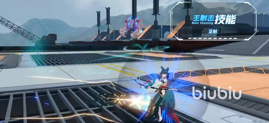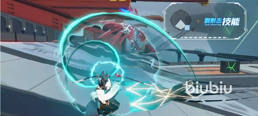 副射击技能“避射”,使用该招式时,她会滑步位移连发三箭,在这个时间内,她会缩小自身的受击判定范围,难以被命中,若在悬靶状态中,能发射更多的箭矢,使用后方向键搭配副射击,会蓄力发射贯穿战场的重箭,在悬靶状态下,这个招式的蓄能时间将大幅度缩短,瞬息间迸发致命杀机。