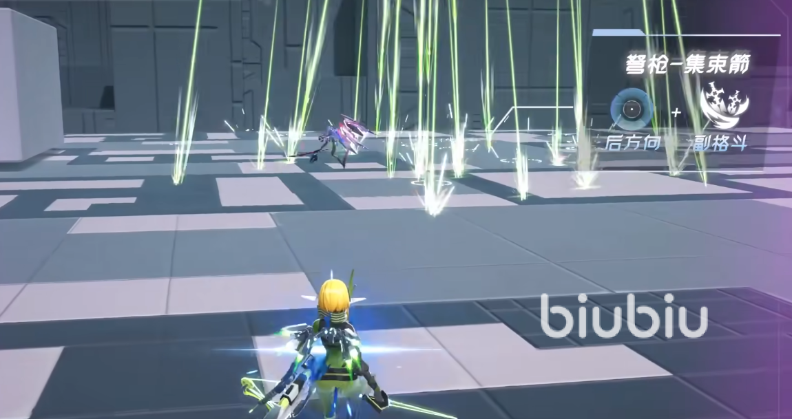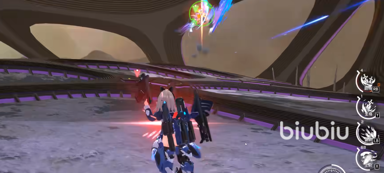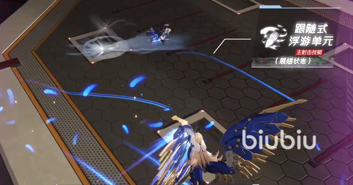 跟随式浮游单元:主射击技能+方向键。在进入展翅状态后,发射强力光束进行射击,配合方向键使用,格丽芬将会往该方向进行移动射击,并在最后发射光束。