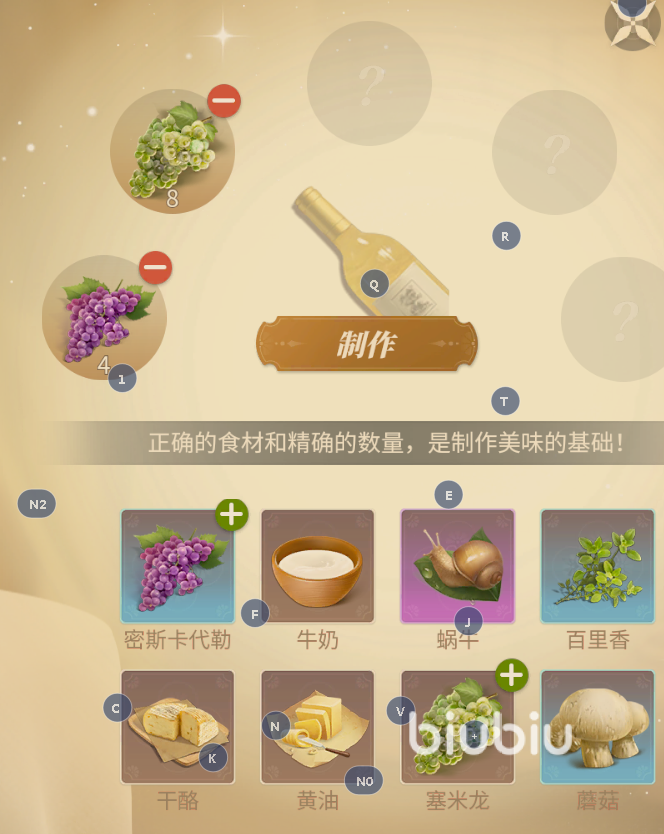 其实每次考核的菜肴就是从蓝色框位置里的几道菜中选取,相当于已经把考试题库给你了。菜肴升星和种植养殖一样,有熟练度的机制,多做几次菜熟能生巧,就会在收获时额外多得一个,升到三星将有 20%的几率多获得一个。