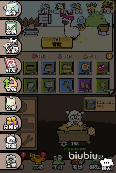在这个冒险的路途中会用到各种不同的挑战,一个人孤身奋战虽然刺激但是获取的奖励跟时间都是成比例的,如果加入到心仪的羊群中,不仅在各个任务中可以取得更好的成绩,特别是副本任务是会有很大的帮助,而且还能跟其他的饲养员一起聊天畅想未来,相互学习技巧,让游戏又增添了很多的乐趣。