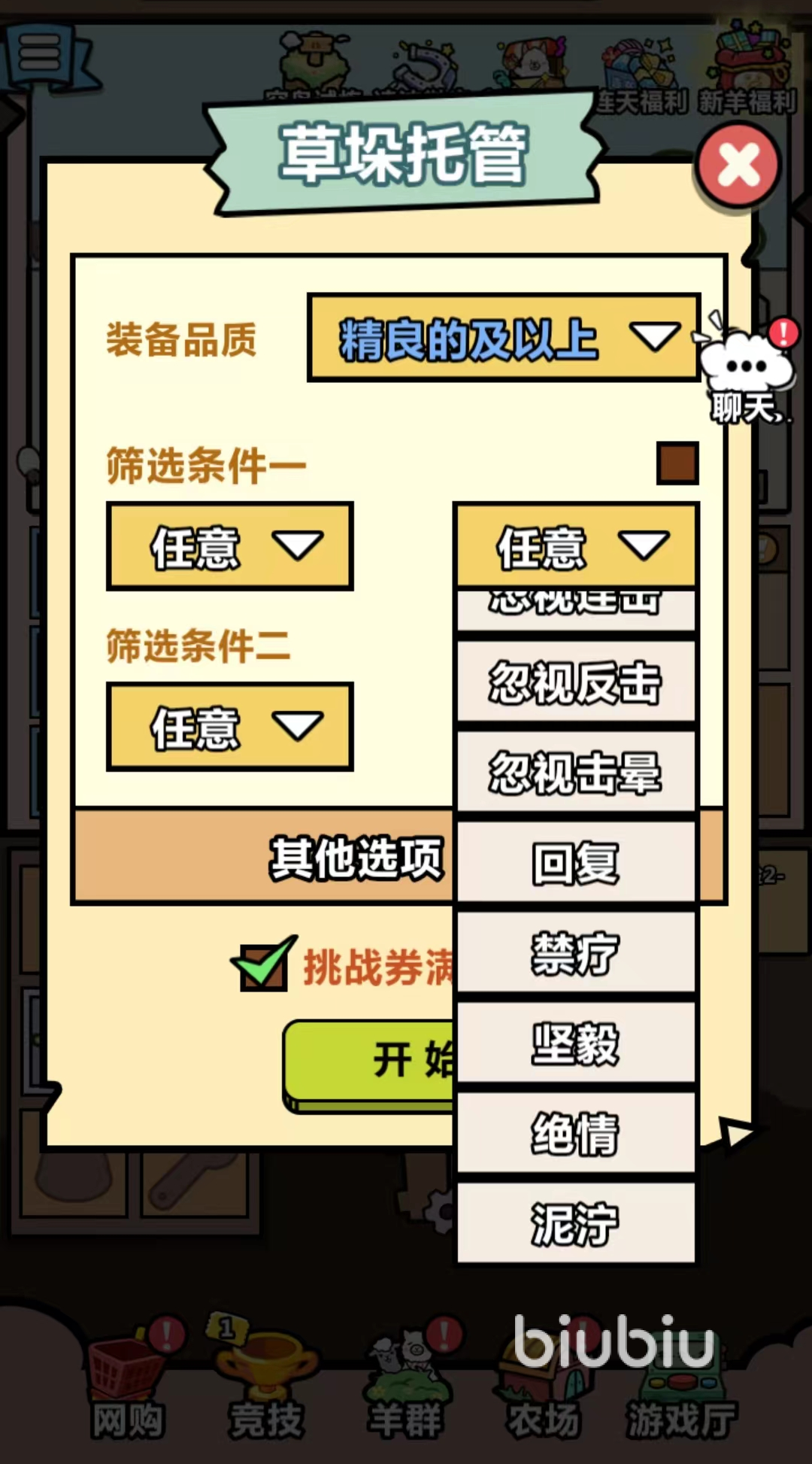 3、筛选条件:筛选条件要看大家自己的需求,一般来说前中期是不需要管筛选条件的。即便是到了后期最好也不要刻意去勾线,优先筛选品质就好。