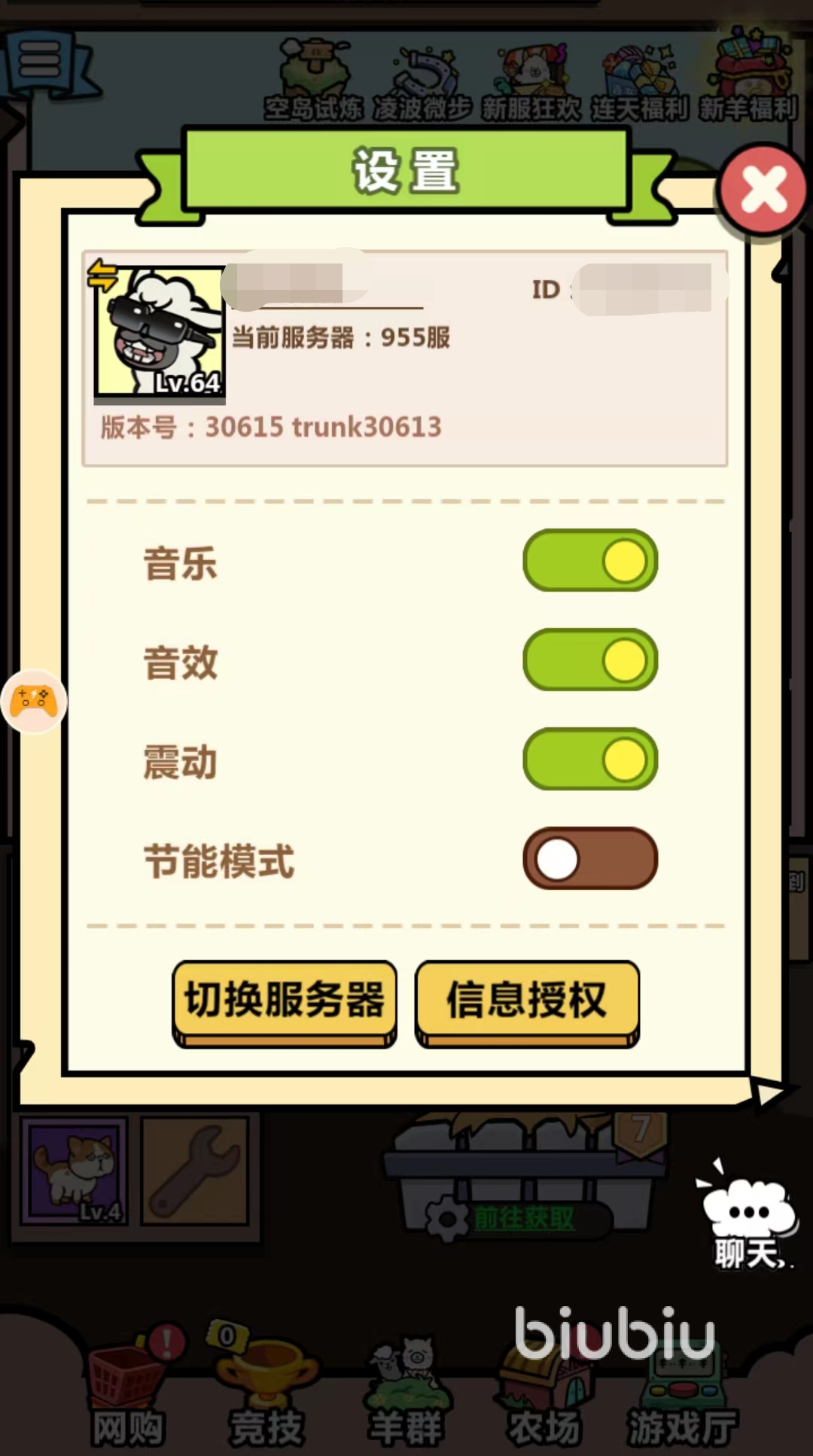 2、目前该游戏可以更改的设置并不算太多,点击游戏主页面最上方位置的“头像”即可进入到设置功能。在这里可以对音乐、音效、震动、节能模式、肖像进行设置,大家可以根据自己的实际需求来进行调整。