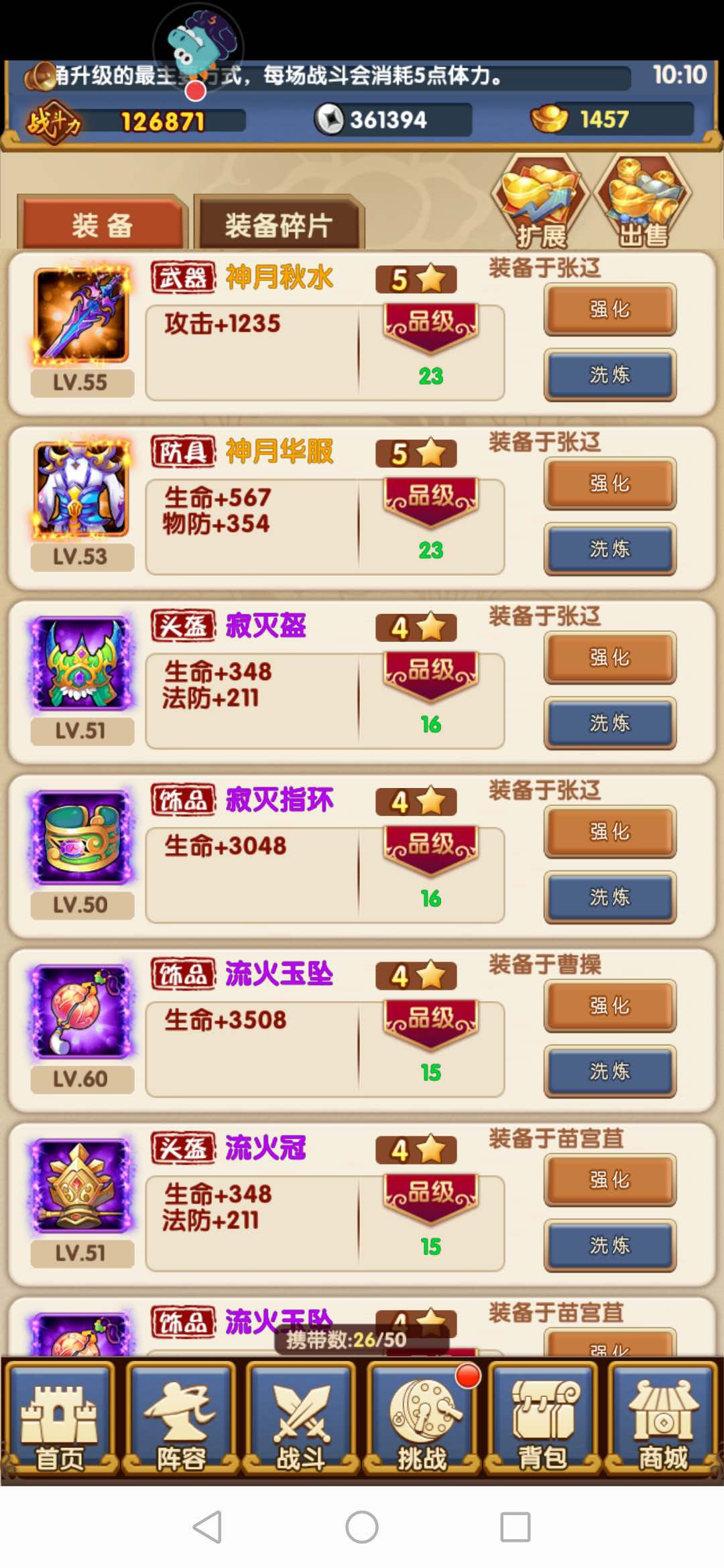 2020年10月18日 21:53 来源:木瓜勇闯三国装备怎么搭配?在勇闯三国中,不仅有大量强力武将来帮助我们战斗,还有很多强力的装备来供我们选择,而且装备为我们提供的战斗要比武将本身还要高,但是很多玩家在面对数量庞大的装备时比较迷茫,小编今天就来教大家如何合理搭配装备才能在勇闯三国中保持不败。