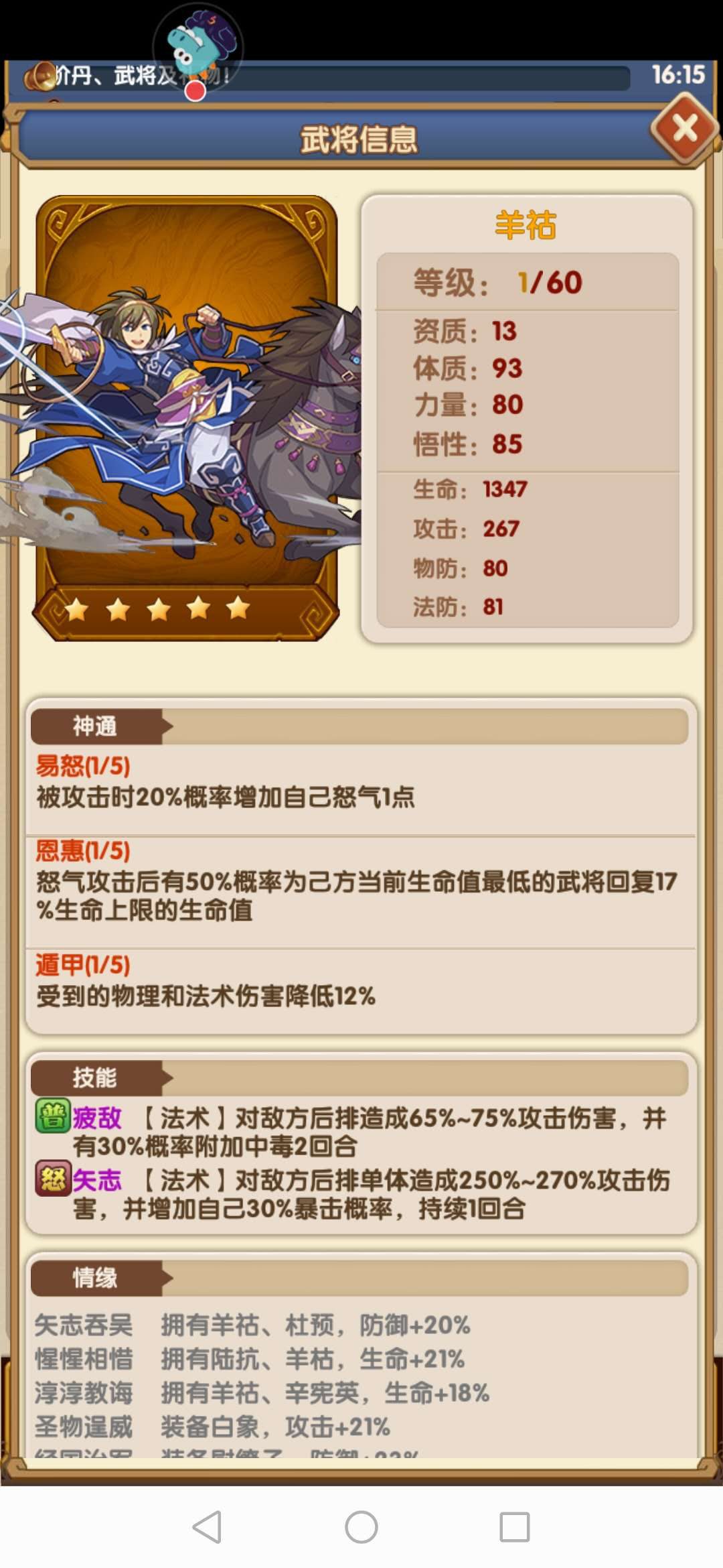 橙色武将在游戏中属于资质在14以下,11之上的武将,在大家打开图鉴之后在高手一栏中的就是橙色武将,从星数上看,橙色武将也属于五星等级,其中也不乏有一下资质低但是技能属性极品的武将。