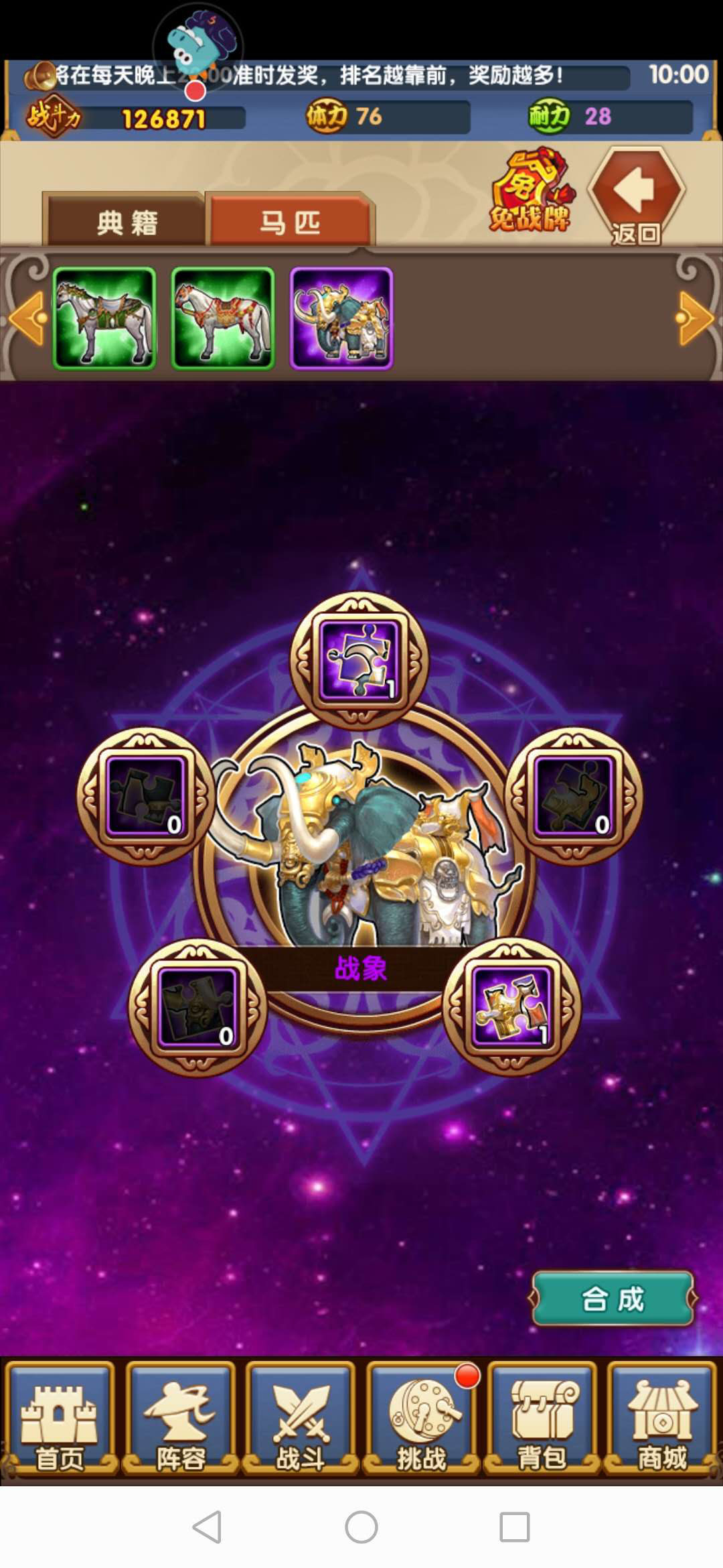 使用精力的活动一般都在挑战活动内,例如宝物争夺、竞技场、比武等活动,宝物争夺是我们平时消耗精力最多的活动,也是精力的主要用处,玩家在商店或是活动中得到的宝物碎片后,来到宝物获取界面上就可以搜集该装备的其他碎片了。