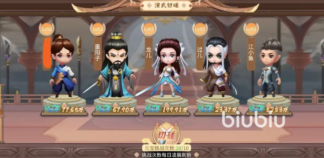 上面两位二选一作为c位即可。个人还是比较推荐龙儿比较好,龙儿做主c带掌门副c,然后龙儿带过儿加上一个陆无双作为挂件。整体阵容方面就是龙儿、过儿、陆无双、掌门加个鱼儿。打一些常规副本,如西湖地牢和珍珑棋局方面难度不大。