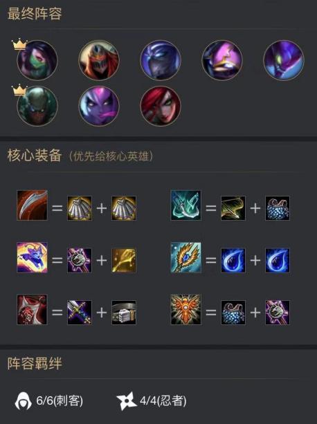 这套阵容的螳螂为一个过渡,和忍者刺客是差不多的,幽梦给到大虫子是最佳的,输出给阿卡丽,保证一刀解决对面一个敌人。
