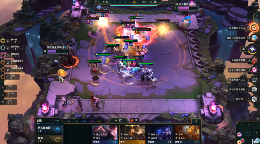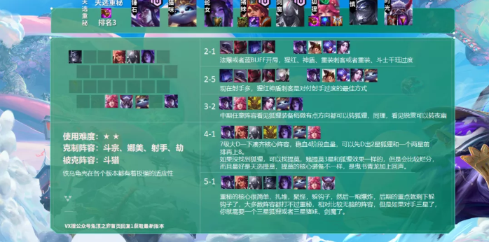 2-5上五人流,例如你看我这1局,我上离子火苗,由于的确法术强度磨抗泪水,能玩的仅有射手和夜幽,这1局是预备夜幽,然而半路发一張狐狸,这明显别管目前装备是啥,就能转狐狸了,狐狸和夜幽相同,过渡期只需瞥见这二张卡,就能转了,如果不是尤其天谴,这局分总有了,并且锐雯一般为烂分,狐狸是奔着吃鸡去的,重秘也能够说是8人口最厉害2星吃鸡阵容,夜幽没个三星抑或五费二星抑或六夜幽神马的打打底,真的是个烂分。