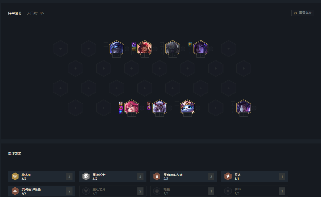 4-1上7人口,这一个阵容的难点实际上是从7人口开启的,狐狸是一定要有个法爆的,目前没狼人了,狐狸不用过多的另外伤害,1个法爆就可以了,只要有个就可以清基本上所有的场,伤害不是很足凑圣杯和夜幽便可,由于狐狸是广泛范围伤害,完全可以忽略法爆的几率,只需1次清场杀的够多就行了。