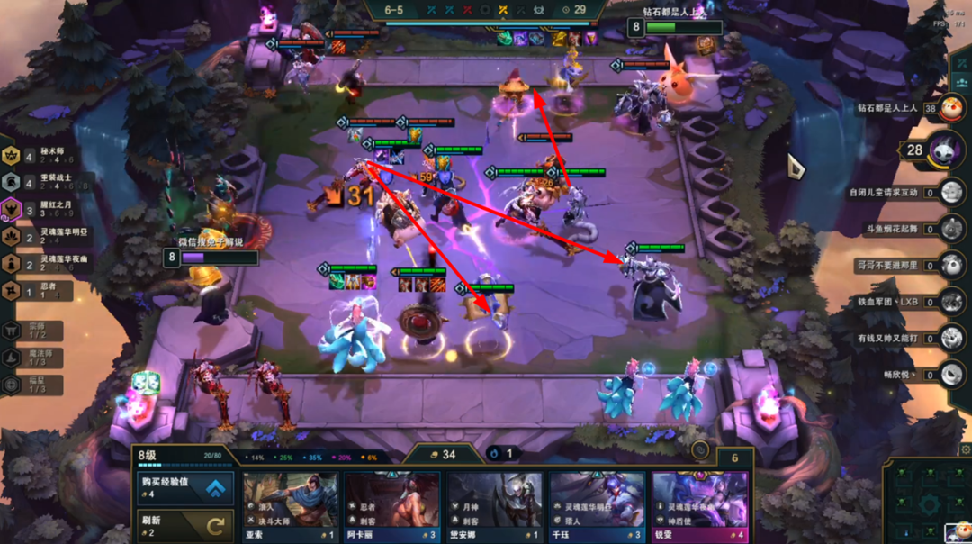5-1的时候上8人口,随后把阵容质量D成二星,配上1个基兰就能预备决赛圈以至吃鸡了,后期的战位是非常讲求的,假如说刺客神马的相对多,当然是扎堆战位,然而假如是偕行和射手相对多,散开战位更强,重中之重是躲链子。