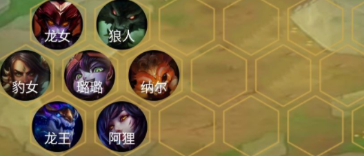 英雄上最少早期还要有个二星的狼人和豹女,露露和狐狸也有出,最好是早期能出龙女,出龙女即使是相对胡的了,此时也不要迟疑了,选择这套阵容对了。