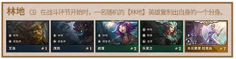 森林是云顶之弈前期非常好用的羁绊,复制一个英雄在前期人口少的时候战斗力提升很大。