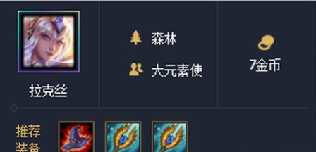 而因为森林英雄费用低,很容易凑齐羁绊,所以很多玩家喜欢用3森林来打工,而6森林的效果是复制所有森林英雄,可是“拳头”还没有推出新的森林英雄,因此必须依靠森林属性的拉克丝,搭配大树、翠神、妖姬、妮蔻才能组成“6森林”羁绊,只要成型之后,对战开始就是12个森林英雄。