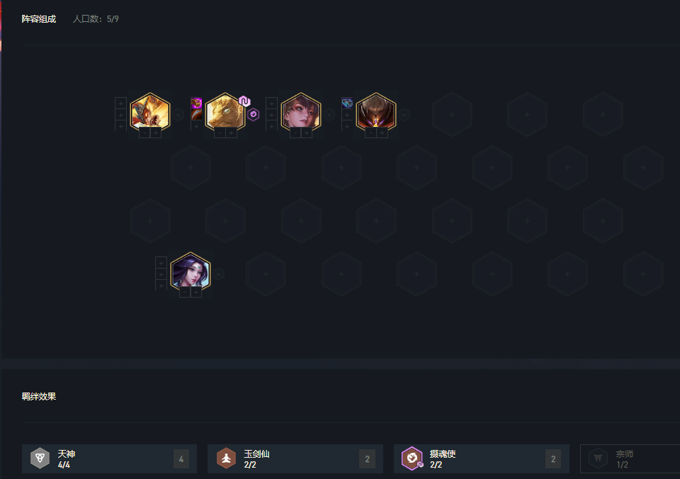 玉剑摄魂这一个套路,说起来并吃少天选,成形了也较强,然而阵容吃高费2星,吃羁绊,重要成形了实力不会是顶尖的,锁血道理差,这就致使了尽管玉剑是个小众,然而强制玩基础即是作死,说到底天史龙王奥拉夫全都是1个二星4费定天地,玉剑这阵容1个T2要求两个4费二星,1个5费2星,还不见得打到过敌人,装备还相对稳定,因而这类阵容稳定的玩法最佳全都是赌一费3星,紧靠一费3星的强悍期活到阵容成形。