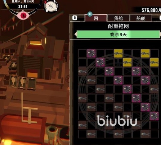 拖网是比较简单的,大家直接购买之后就可以安装了,然后到地方使用技能就可以把它放下之后就可以捞到鱼,并且通网捉到的是不会占用大家的背包空间的,所以非常的划算,而且鱼会一直新鲜,不会像钓鱼一样花钱。