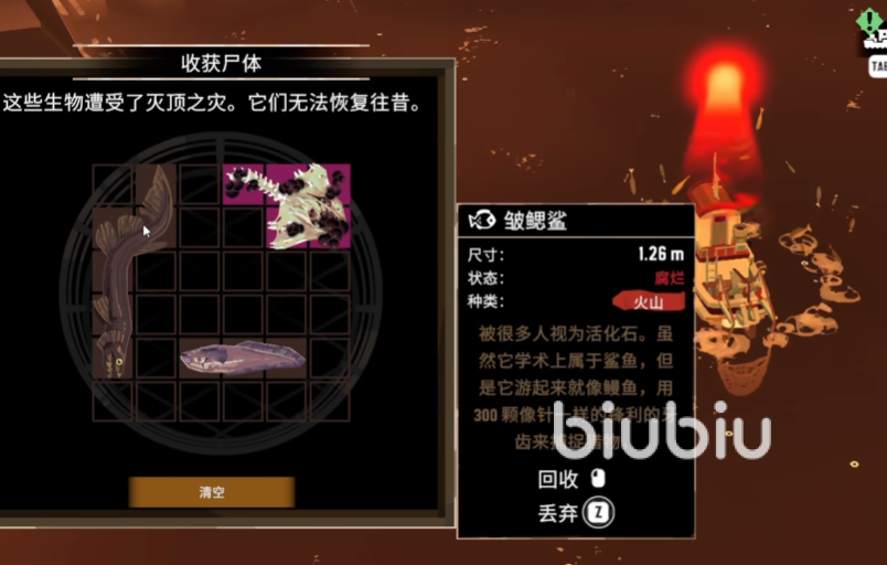 最后一个祭坛需要2条畸变鱼,用枯萎技能就有很大几率能捕到畸变鱼,另一条畸变鱼则要钓或者用渔网捕。火山这里没有岩板任务,完成最后一个祭坛的烈火获取就会自动给到一个高速钓具。