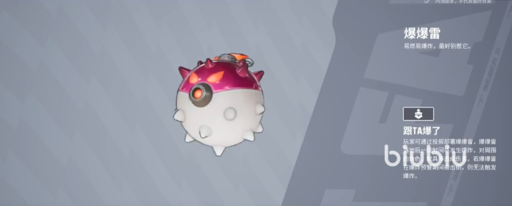 3、爆爆雷,可以远程投掷一枚定时炸弹,炸弹是延迟生效的,但是炸弹爆炸的范围非常的大,且拥有多段伤害,这个宠物在很狭隘的地形,比如房区巷战,效果直接翻倍,后期野外对枪时,也可以将在打药的对手直接逼出掩体,非常适合像罪枭这一类的角色使用。