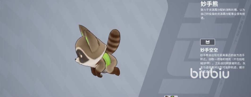 1、妙手熊,能偷取对方身上的一个随机道具,比如偷到一些枪械配件,医疗包都是不错的,除了可以偷取局内道具之外,还能帮助玩家找到最近的敌人,相当于起到了信息位置的作用,可以当做一次性的侦查道具来使用,但是妙手熊会显示可追踪轨迹,意思对手其实是可以顺着路直接找过来的,对于近战的意义不是很大。
