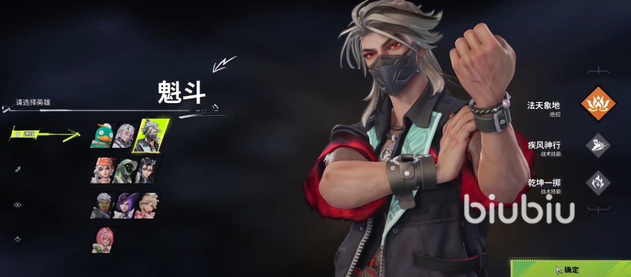 非常灵活的侦查型角色,技能疾风神行可以获得加速,但加速期间会持续掉血,损失的血量会在脱战后慢慢恢复。技能“乾坤一掷”则可以投掷乾坤雷,被命中的敌人会受到伤害与减速,乾坤雷可以感知侦查敌人。大招法天象地,在这个形态下攻防能力都得到大幅提升,命中敌人可以减速,击败击倒敌人可以延长大招持续时间。在战术射击游戏里跑图能力是很重要的能力。魁斗可以在战场中提供视野优势,配合队友进行突袭。