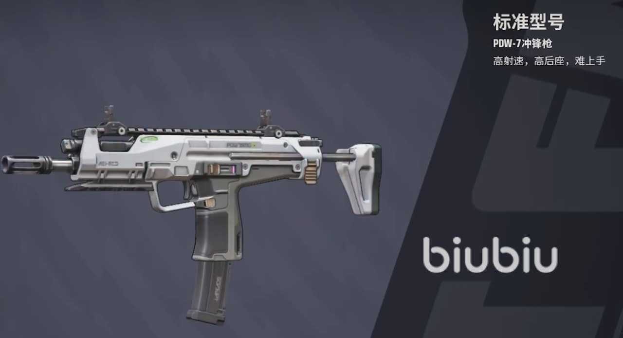 这是一把偏突击的冲锋枪,它的后坐力并不稳定,但同时却换来了常规冲锋枪中最高的伤害,利用好可以在短距离作战中打出瞬杀伤害,不过因为它的散射比较大,所以大家实际使用时射击不容易命中,对压枪能力有一定的考验。