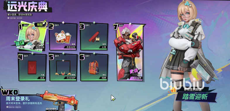 在开服之后会有着一个全新的7日签到活动,每一天登录都会赠送一些道具和物资。第一日登陆会赠送鸭鸭稀有皮肤,之后如果登陆满7天的话还会获取到决斗者的史诗级枪械皮肤海滨枪神。周末登录还可以获取到史诗背包的特殊皮肤。