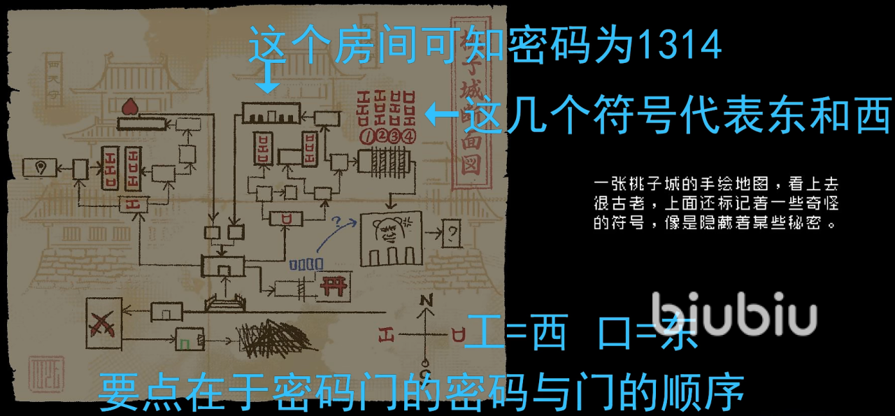 玩家们在想要通关桃子城,地图就十分的重要了,各位小伙伴们在这个地图上可以得到两个解密互动的地点,只需要根据纸条上给出的解密提示,可以很快的就找到相对应的解决方式。