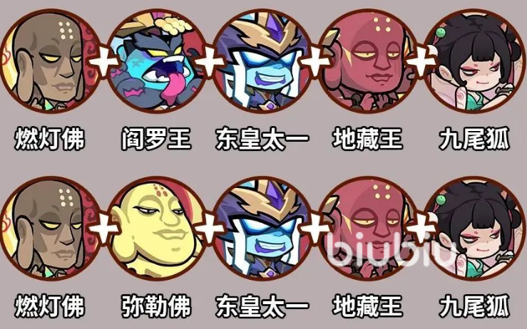 一种以法术AOE与灼烧持续伤害为主的输出体系,这个流派的核心角色是SSR级别的【燃灯古佛】,其技能可以大范围覆盖敌人,并叠加灼烧debuff,使敌人在数秒内不断掉血。燃灯古佛一旦升至高星,其灼烧层数叠加速度与技能覆盖范围将大幅提升,特别适合用于清理大批敌军或对抗高血量Boss。为了让燃灯古佛技能持续触发并保持高输出,队伍中往往还需配置【阎罗王】、【弥勒佛】等拥有法术爆发能力的副C,同时搭配【东皇太一】与【地藏王】这类具备控制与辅助能力的角色。东皇的冻结与减速能有效延缓敌人进攻,地藏王的麻痹与电力加持适合为队伍提供初期能量,加快启动节奏。而【九尾狐作】为全队的法术核心辅助,能够降低敌人法防,提高燃灯古佛的输出效率,是不可或缺的一环。