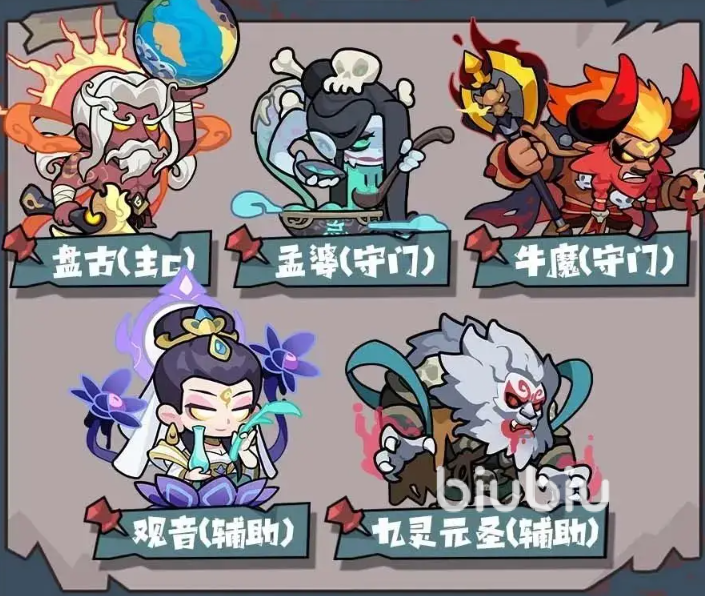 队伍中另两个关键的守门角色是【孟婆】与【牛魔王】,前者稳定回血为盘古持续作战创造条件,后者以击退控制与高抗性守住前线,确保主C有稳定输出环境。辅助方面则建议搭配【九灵元圣】与【观音】,两者分别在控制与增益续航方面提供强力支援。九灵的破甲与晕眩效果能为盘古制造连招输出的空间,而观音的怒气回复与全队治疗能在拉锯战中稳定队伍节奏,特别是她的暴击增益搭配高频物理输出角色格外出色。