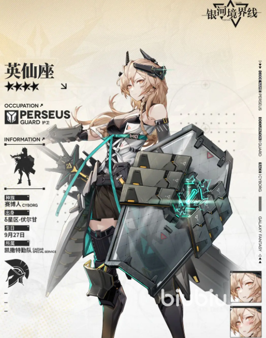 四星的护卫英仙座,作为前排,是游戏里抵挡敌人前进的代表角色之一,这类角色从设计上看就很厚重,采用了大量的装甲和防具设计,力图让角色看得更耐打,不过既然是美少女二次元游戏,自然也会在身材和形象上有展现的空间。