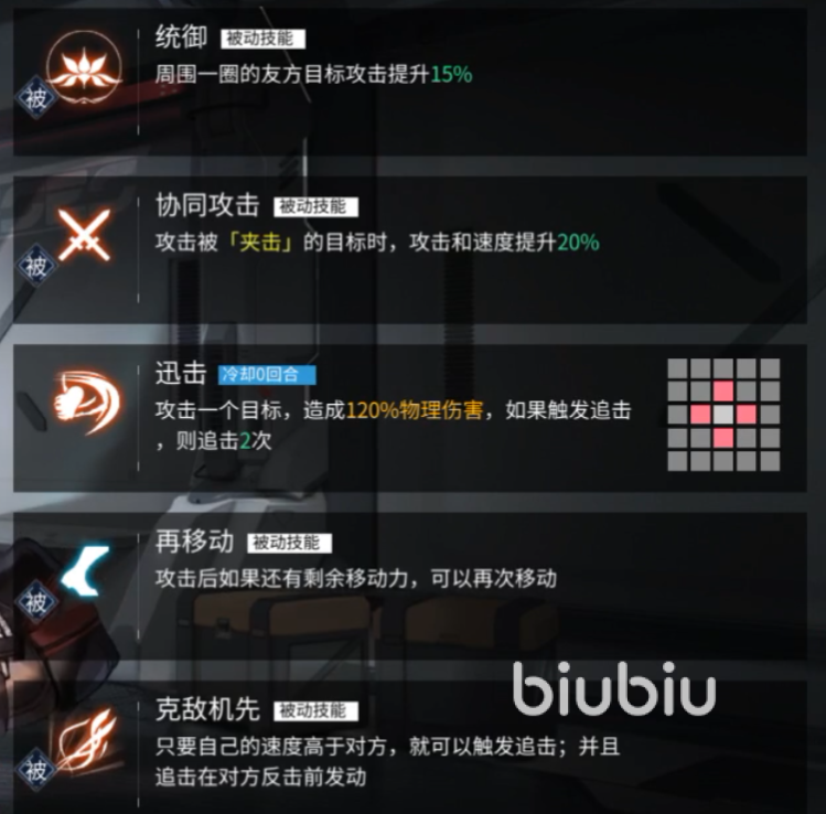 抛开他单体的强度不谈,她还是版本最强势的体系,天廻体系中的一员,这个体系中她是决对的主c,在这个体系里她的常驻速度会永远比敌方高一,因为游戏战斗机制的特殊性这就导致,这一点速度会一直触发追击,而追击的效果为永远先手攻击敌方并且不给敌方拉开攻击距离的机会。