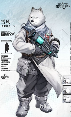 雪风这位角色在玩家第一次遇到它时,它就顶着一个哈士奇的脑袋和玩家对话,在对话中玩家可以看到这只哈士奇穿着一身雪地服,拿着一把医疗用的步枪,好像一个医疗兵。