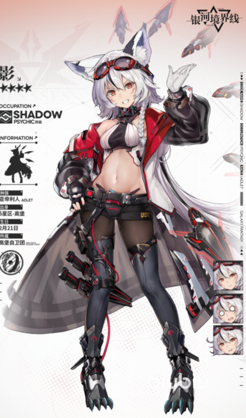 最后是四星异能角色,这位四星的异能角色叫做影,她是一位拥有兽耳身穿露脐装的少女,其实吧四星角色没啥要说的,因为属性和技能比起六星和五星都要差不少的原因,所以四星角色几乎没人用,最差也是选五星角色上场,因为游戏中五星角色抽取难度不高,基本上人人都能抽到。