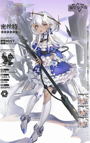 不过虽然说这类角色能克制住特殊类型角色,但是不同角色之间能造成的压制力却是不一样,其中伤害最高的是三位六星的异能类角色,这三位角色分别是密丝特、天廻和星奏。首先是密丝特,她是谢顿理事会的一员,外貌上,她是一位拥有白色头发红色眼睛,皮肤偏黑的少女,身穿一身蓝白相间的公主裙手拿一根科技权杖;技能上,她拥有不错的aoe伤害类型技能,还有着不错的控制能力;属性成长上,她的成长生命成长点数较高,攻击和速度成长较低,不过在六星角色中也算还可以了,综合来看这位角色是一位偏向于辅助类型的异能角色。