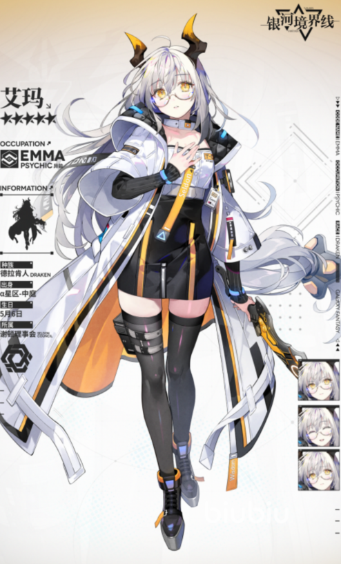 之后是两位异能角色和一位四星异能类角色,这两位五星异能类角色分别是艾玛和海拉,艾玛是一位戴着眼镜头上长着犄角的百分少女,海拉则是头上拥有羊角的灰发少女,这两位角色属性上并没有太大区别,主要在技能上海拉偏向于输出拥有降防能力和不错的单体爆发技能,而艾玛则偏向于防御控制,拥有不错的aoe伤害技能和控制,她们俩的强度还行,是六星异能角色的下位替代品。