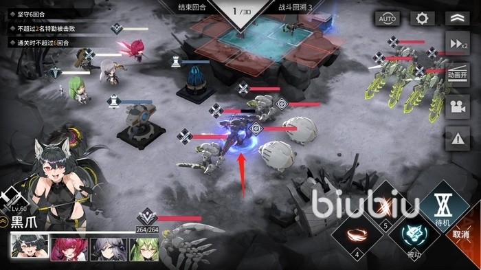 先简单了解下她的技能组,被动普攻能让目标无法移动1回合,狙击职业天赋无视双防。主动弱点锁定是对单技能,暴击大幅提升并且造成150%的能量伤害。另一个被动“贯穿射击”普攻可以打到目标身后的单位,在对敌人造成伤害的同时能将其锁死,晋升之后还自带贯穿能一次锁2个。
