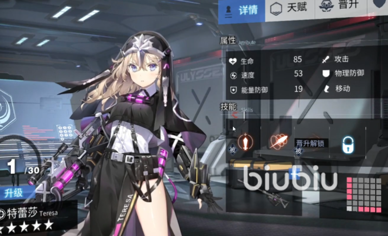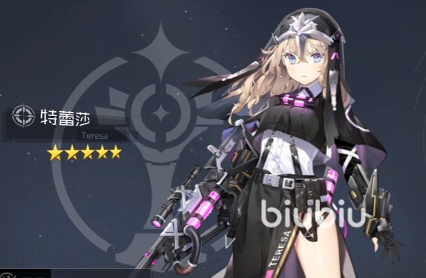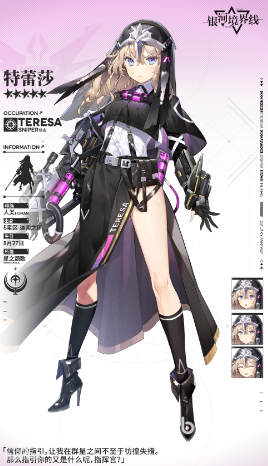 特蕾莎是一位拥有金色长发、蓝色眼睛、身穿修女服的五星狙击类型角色,该角色的种族是人族,出生于迦南之环,所在阵营为星之颂歌,特蕾莎在游戏中可以说是星之颂歌的忠实捍卫者了,她视自己的阵营为信仰,当玩家和她对话时就能感觉到她那股虔诚的信仰,那么这样一个信徒是如何成为大姐头的呢?这就不得不说到她在剧情和实战中的表现了。