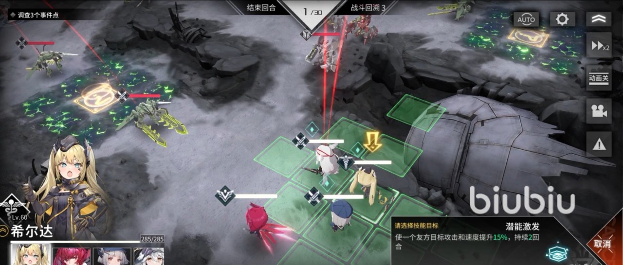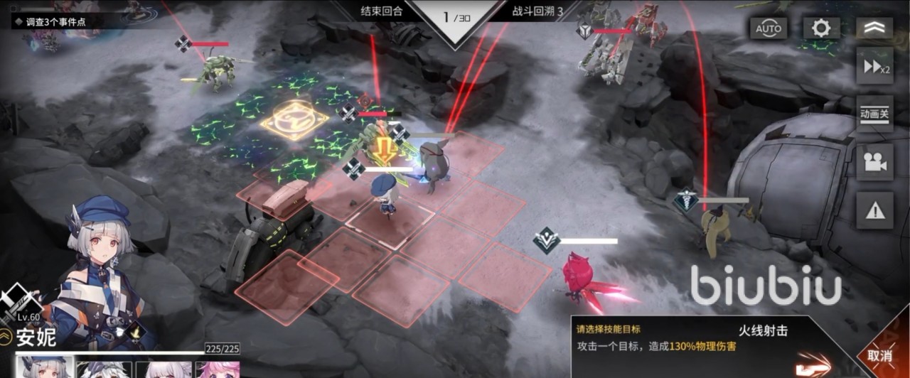 在战斗开始时,玩家要去攻击守在传送节点的强袭α型异构虫,先让希尔达用【潜能激发】来对白夜进行一波强化,接着就让白夜移动至异构虫前方进行攻击,打掉三分之一的血量后,由安妮出手,使用【火线射击】再打掉它三分之一的血量,使这只异构虫变成残血。