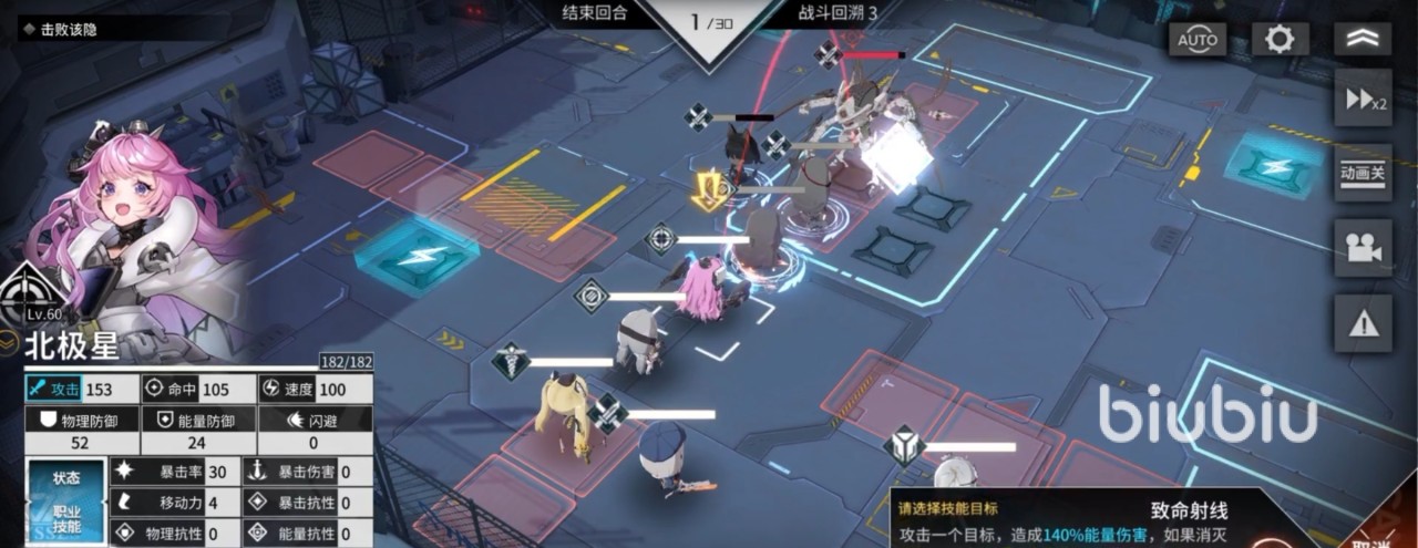 趁该隐去攻击黑爪的时候,玩家可以安排鸥在它的右方进攻,这时候它不会注意到鸥,所以大家可以让鸥放心大胆地进行输出,等到了第五回合的时候,该隐就会释放它的技能三,场上就会多了几个复制体,此时,各位可以安排北极星、安妮在后方进行输出,安妮的技能中是有控制能力的,这对该隐来讲的确有点克制效果,当然用来打复制体也是绰绰有余的,而黑爪、北极星、白夜、弧月等则专注于去攻击该隐。