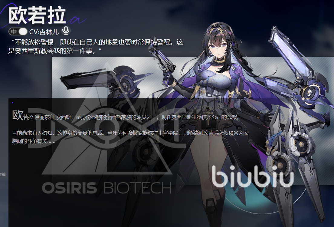 而奥西里斯生物科技公司则信奉着人类进化的思想,认为改造人类的体质才是对抗异构虫的最好方法,其下辖的干员基本上都是亚地利人,具有可爱的兽人外表,目前该势力的一姐名为欧若拉,欧若拉是一名突击角色,可以依靠自己的生物改造技术高速移动,初始的移动能力就有6点,比天狼星还高一点,同时欧若拉还具有出色的范围伤害,可以说是开荒推图以及速刷日常经验本的最佳角色没有之一,玩家们如果在前期抽到的话,游戏体验将大幅上升。