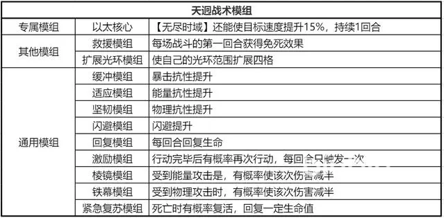 银河境界线天迴模组怎么搭配比较好呢?天迴作为一个辅助奶妈角色,想要对团队有贡献最重要的就是活着,活着才有输出,所以优先考虑防御型模组。以下表推荐为例: