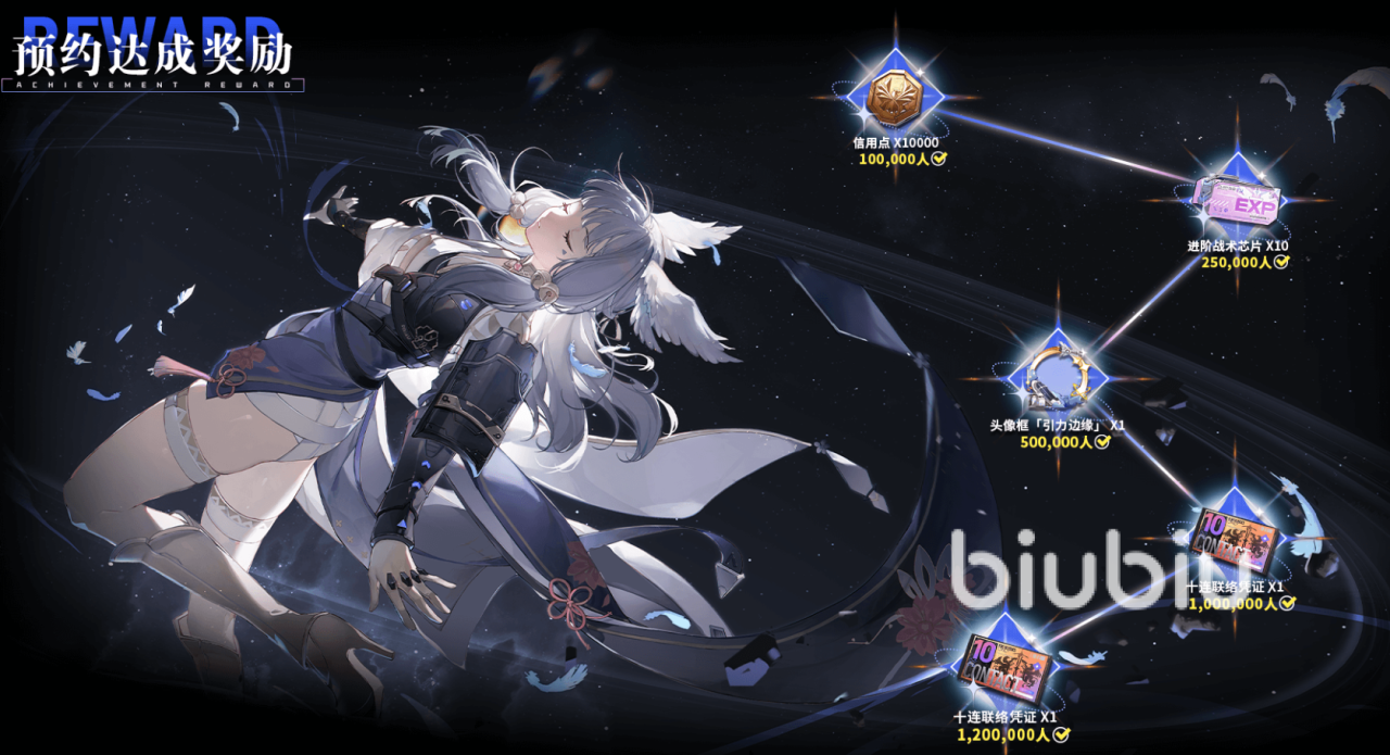 首先是预约达成奖励,目前为止,总共有120万人的玩家预约,因此,五个档次的预约奖励,玩家们都可以拿的到。共计约有俩张十连劵以及十个进阶战术芯片,一万信用点数加上一个引力边缘的头像框。奖励还是很丰富的,可以白嫖20抽和一些素材。